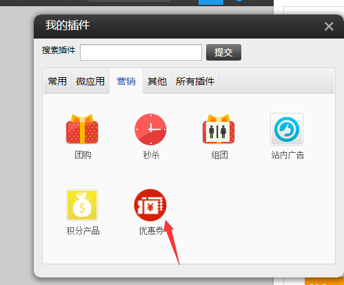 ②.在插件--营销里面,选择优惠券插件